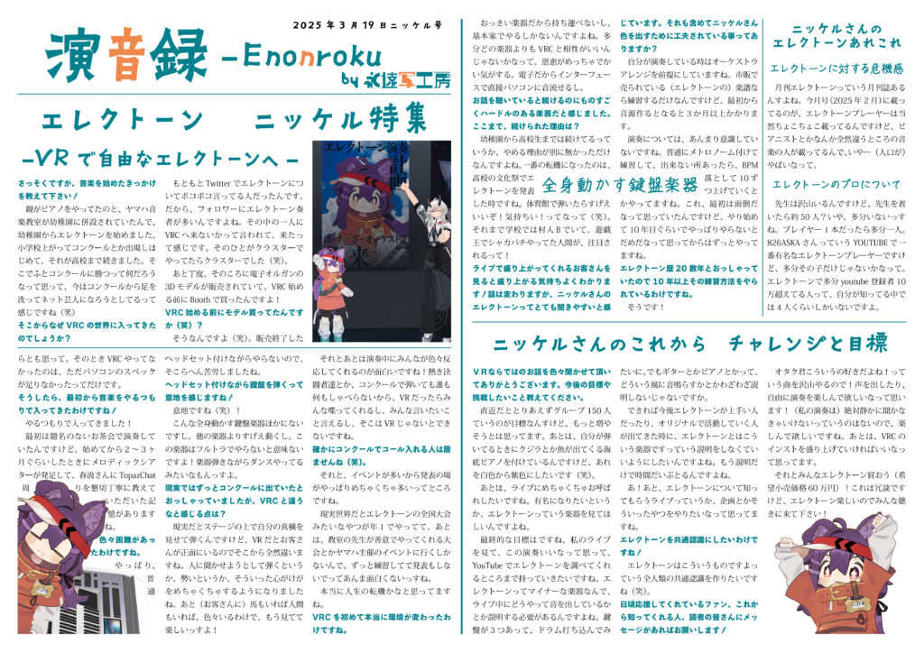 VRCや現実世界でもエレクトーンの普及活動をしているニッケル様にインタビューを行いました。