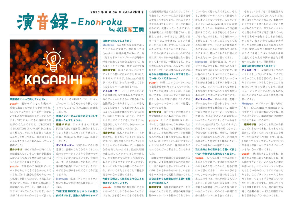 ストレートで熱いロックバンドのKAGARIHI様をインタビューしました。